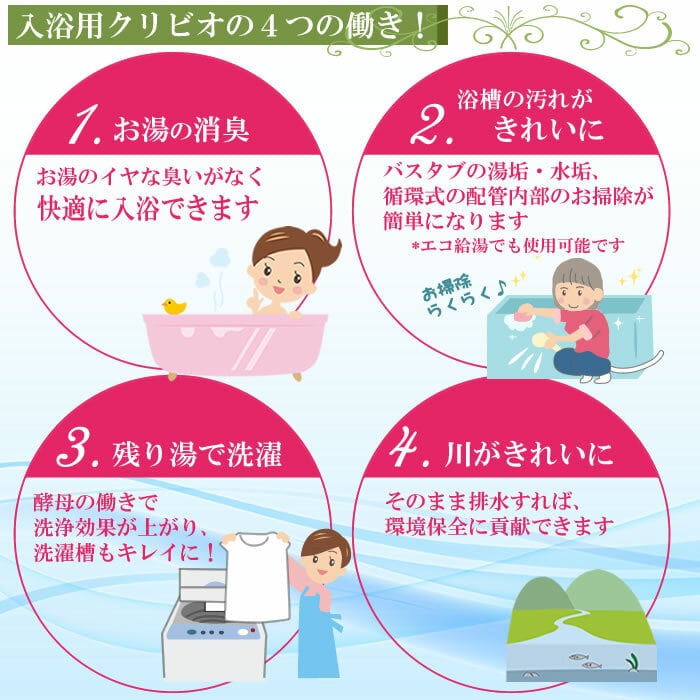 ④残り湯を洗濯に使えば、酵母の働きで洗浄効果も上がります。また、洗濯槽がキレイになり、嫌な臭いもなくなります。